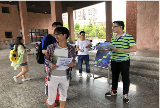 讲座开展前期,我院研会干事在学院旁对路过的同学进行了讲座和用电常识宣传单的派发,引起了同学们对本次讲座的兴趣,增强了同学们的用电安全意识。